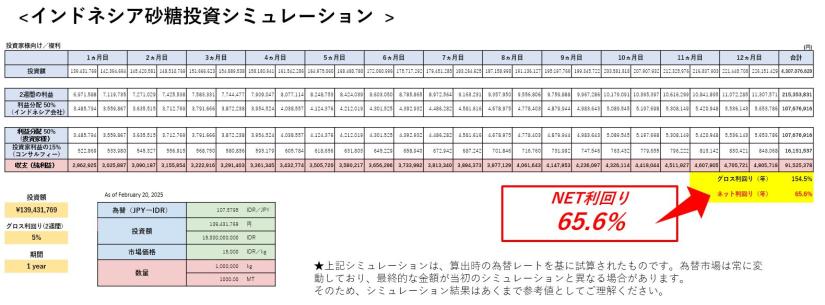 インドネシア砂糖投資プロフィットシェアプロジェクト